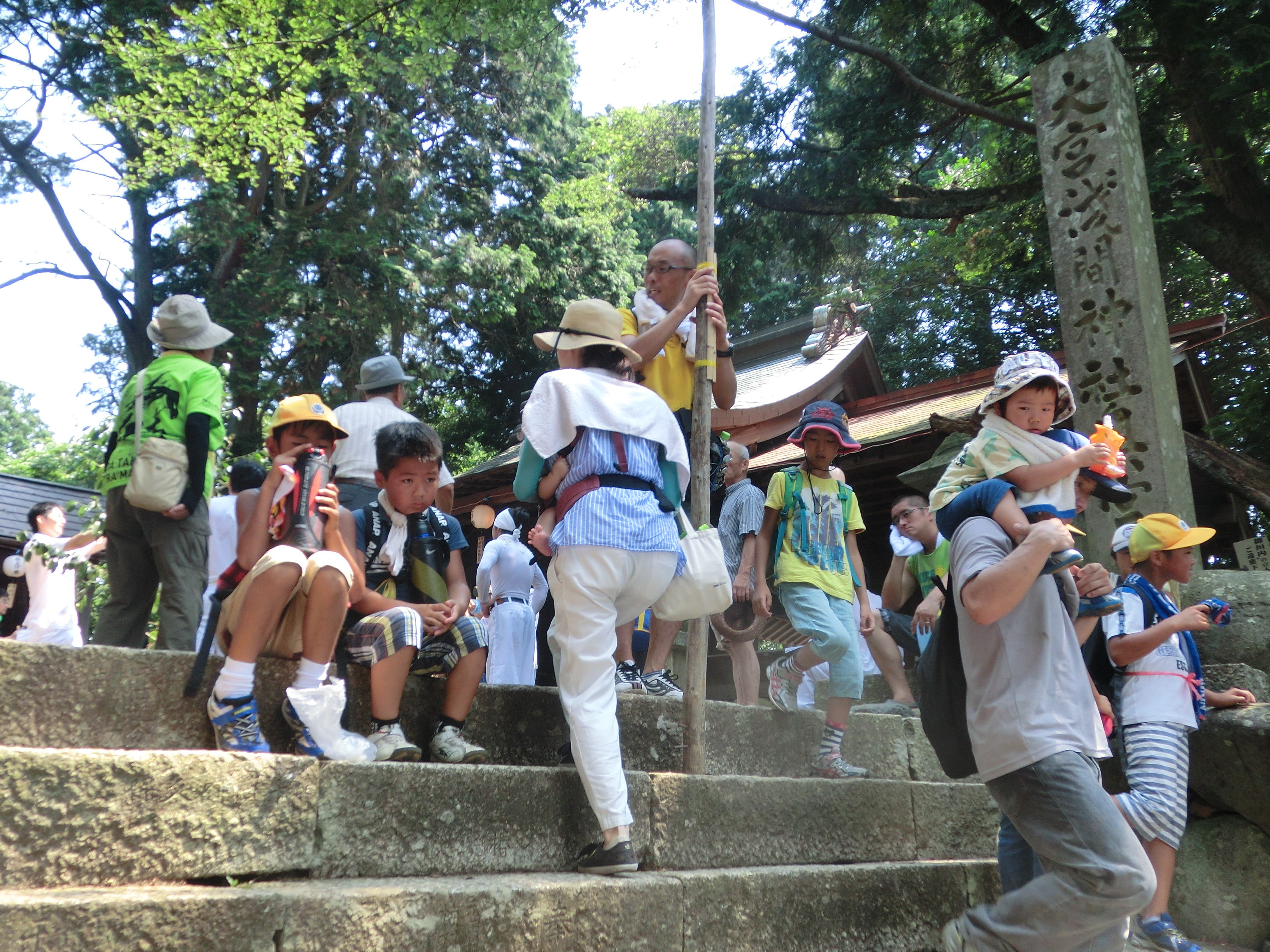 I put up this stone, and the festival was blessed with weather and was able to reach the summit of the deepest-placed shrine which was the mountaintop of Owari Fuji somehow this year. It was likely to rain and remembered that I had a hard time since I went out last year from a house. However, an average year does not have it this year and is hot. A 76-year-old person before the climbing seemed to be carried in an ambulance for heat stroke by the story of the Shinto priest in the deepest-placed shrine. It is fortunate that it is before the climbing. I am getting used, and the carelessness assumes that I continue reaching the summit for years, too. I have hit the shin on the stairs of the stone which rose to the deepest-placed shrine. I applied the medicine which I got from a kind person as emergency and dealt. Therefore, a descent from a mountain was behind the plan and has put a wife under worry. In addition, I had an elderly woman take the photograph of one's face. I say that this woman reached the summit in couples before. It is the same as my home. By the way, Kenseki did two stones which wrote the wish of grandchildren and the person of my home. In addition, I put up a stone of the last year and found Kenseki of the festival. The letter becomes thin, but can view it. I want to reach the summit well next year.
